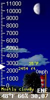 NWS forecast: Showers and thunderstorms before 11pm, then a chance of showers and thunderstorms. Mostly cloudy. Low around 39, with temperatures rising to around 42 overnight. Northeast wind around 10 mph, with gusts as high as 17 mph. Chance of precipitation is 80%. New rainfall amounts between a quarter and half of an inch possible. WXSIM forecast: Cloudy in the evening, becoming mostly cloudy after midnight. Rain likely in the evening, then a chance of rain after midnight. Low 48°. Wind east-northeast around 8 mph, gusting to 16 mph. Chance of precipitation 70 percent. Precipitation mostly between a quarter and half an inch.