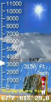 NWS forecast: A chance of showers and thunderstorms before 7pm, then showers and thunderstorms likely between 7pm and 9pm, then a chance of showers and thunderstorms between 9pm and 10pm, then a chance of showers and thunderstorms between 10pm and 4am, then a slight chance of showers and thunderstorms between 4am and 5am, then a chance of showers and thunderstorms. Mostly cloudy, with a low around 51. Northeast wind 6 to 9 mph, with gusts as high as 16 mph. Chance of precipitation is 60%. New rainfall amounts between a quarter and half of an inch possible. WXSIM forecast: Dense overcast. Patchy light fog in the morning. A chance of rain in the morning, then rain likely in the afternoon. Scattered thundershowers possible. High 59°. UV index up to 3. Wind east-southeast around 9 mph, gusting to 16 mph. Chance of precipitation 70 percent. Precipitation mostly between a quarter and half an inch.