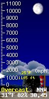 NWS forecast: A chance of snow showers. Cloudy, with a low around 27. Northwest wind around 2 mph. WXSIM forecast: Mostly cloudy. Low 27°. Wind north near calm.