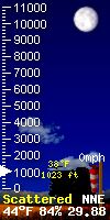 NWS forecast: A slight chance of rain after 5am. Partly cloudy, with a low around 42. East northeast wind 3 to 9 mph, with gusts as high as 17 mph. Chance of precipitation is 20%. WXSIM forecast: Partly to mostly cloudy in the evening, becoming partly cloudy after midnight. Low 42°. Wind northeast around 2 mph in the evening, becoming east around 7 mph after midnight.