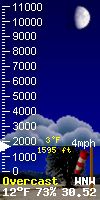 NWS forecast: Partly cloudy, with a low around 9. Wind chill values as low as -10. Northwest wind around 20 mph, with gusts as high as 38 mph. WXSIM forecast: Mostly cloudy. Breezy and cold. Low 9°. Wind chill ranging from -9 to -1. Wind northwest around 15 mph, gusting to 25 mph.