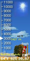 NWS forecast: A chance of showers and thunderstorms before 7pm, then showers and thunderstorms likely between 7pm and 9pm, then a chance of showers and thunderstorms between 9pm and 10pm, then a chance of showers and thunderstorms between 10pm and 4am, then a slight chance of showers and thunderstorms between 4am and 5am, then a chance of showers and thunderstorms. Mostly cloudy, with a low around 51. Northeast wind 6 to 9 mph, with gusts as high as 16 mph. Chance of precipitation is 60%. New rainfall amounts between a quarter and half of an inch possible. WXSIM forecast: Mostly cloudy to cloudy in the evening, becoming cloudy after midnight. Patchy light fog after midnight. A chance of rain in the evening, then a slight chance of rain after midnight. Precipitation showery or intermittent. Low 50°. Wind east-northeast around 7 mph in the evening, becoming north after midnight. Chance of precipitation 50 percent. Precipitation mostly around a tenth of an inch.
