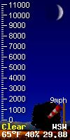 NWS forecast: Partly cloudy. Low around 55, with temperatures rising to around 60 overnight. South southwest wind 14 to 17 mph, with gusts as high as 31 mph. WXSIM forecast: Fair to partly cloudy. Windy. Low 58°. Wind south around 16 mph, gusting to 24 mph.