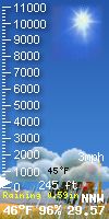 NWS forecast: Rain likely and a chance of thunderstorms before 2pm. Mostly cloudy. High near 58, with temperatures falling to around 56 in the afternoon. North wind 6 to 15 mph, with gusts as high as 24 mph. Chance of precipitation is 70%. New rainfall amounts between three quarters and one inch possible. WXSIM forecast: Fair in the evening, becoming fair to partly cloudy after midnight. Low 43°. Wind north around 6 mph, gusting to 15 mph, in the evening, becoming east-northeast after midnight.