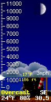 NWS forecast: A chance of rain before midnight, then snow and a slight chance of drizzle between midnight and 1am, then freezing drizzle and a chance of snow and a chance of drizzle. Cloudy. Low around 27, with temperatures rising to around 32 overnight. East wind 7 to 10 mph, with gusts as high as 18 mph. Chance of precipitation is 90%. New snow accumulation of less than half an inch possible. Little or no ice accumulation expected. WXSIM forecast: Dense overcast. Patchy light fog after midnight. A slight chance of rain in the evening, then a chance of rain after midnight. Relatively mild. Low 47°, but temperatures rising after midnight. Wind southeast around 9 mph, gusting to 19 mph. Chance of precipitation 50 percent. Precipitation mostly around a tenth of an inch.