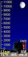 NWS forecast: Mostly clear. Low around 48, with temperatures rising to around 50 overnight. South wind 1 to 17 mph, with gusts as high as 25 mph. WXSIM forecast: Clear. Low 48°. Wind south-southwest around 5 mph, gusting to 17 mph.